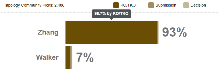 很多武粉都认为沃克是一位攻高防低的拳手,虽然进攻实力不俗,但是防御过于薄弱,张名扬很有可能再次打出一场速胜KO。在外国的网站中有93%的粉丝认为张名扬能够获胜,支持张名扬的粉丝中有接近99%的人认为会是KO获胜。